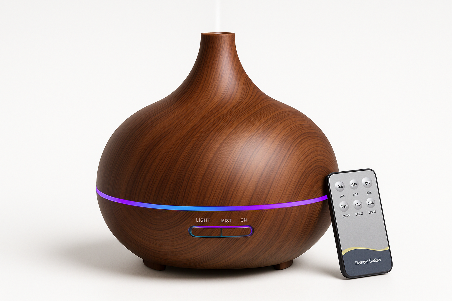 TranquilMist Pro Aromatherapy Diffuser & Humidifier - 500ml Wood Grain Design with 7-Color LED & Remote Control for Adults 40+