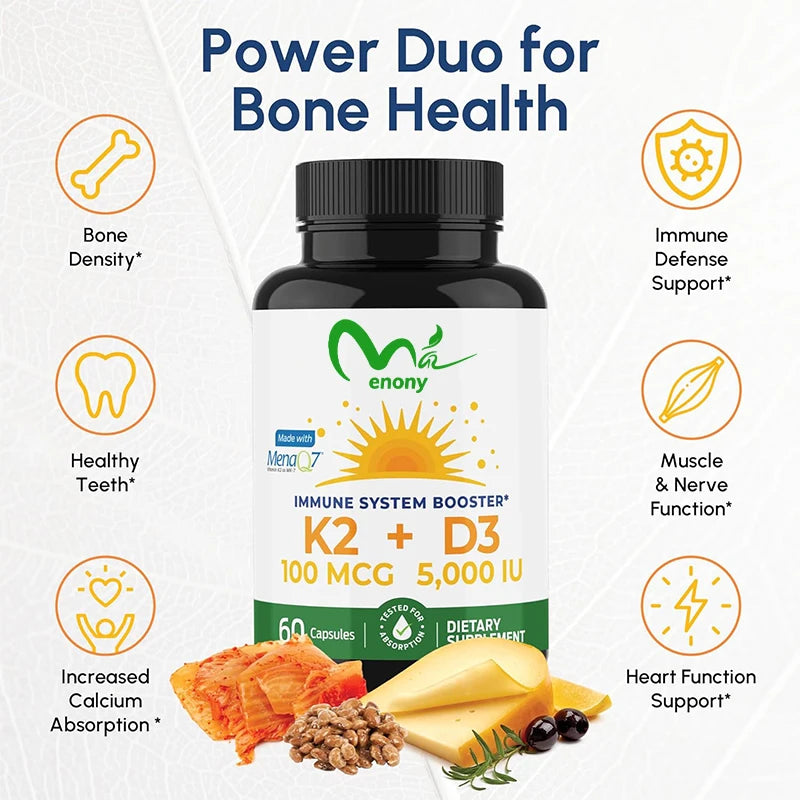 Support strong bones, teeth, and heart health with maximum absorption Vitamin D3 + K2. Each vegetarian capsule delivers essential nutrients for optimal calcium utilization and immune support—perfect for daily wellness.